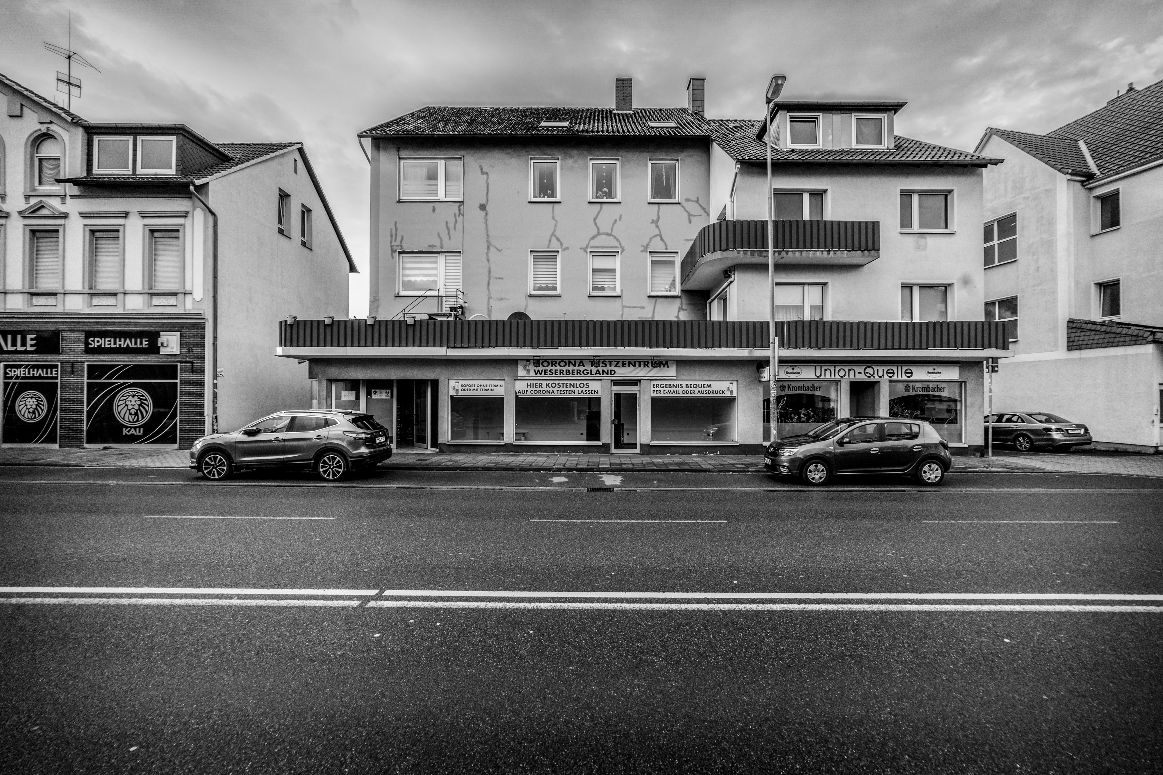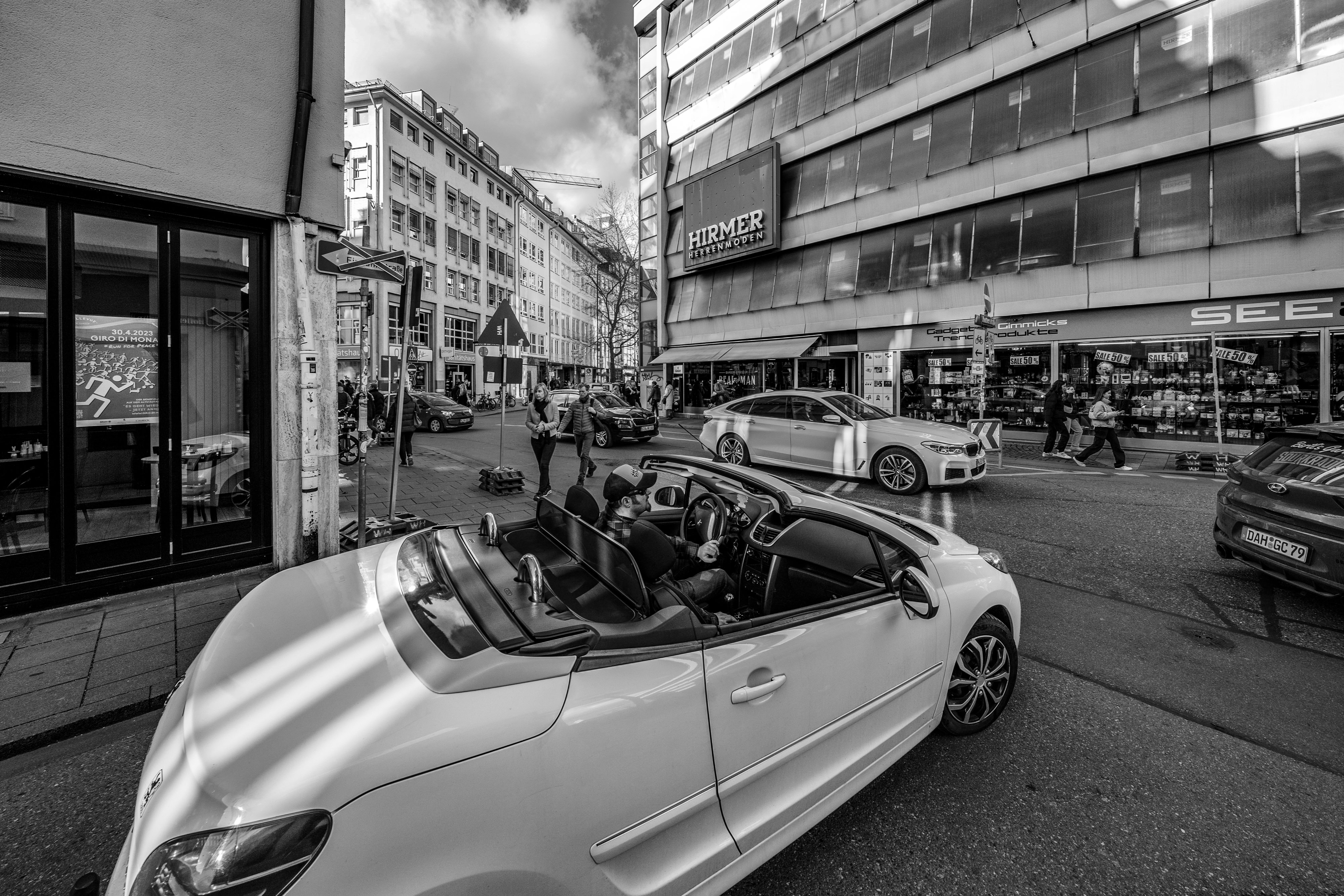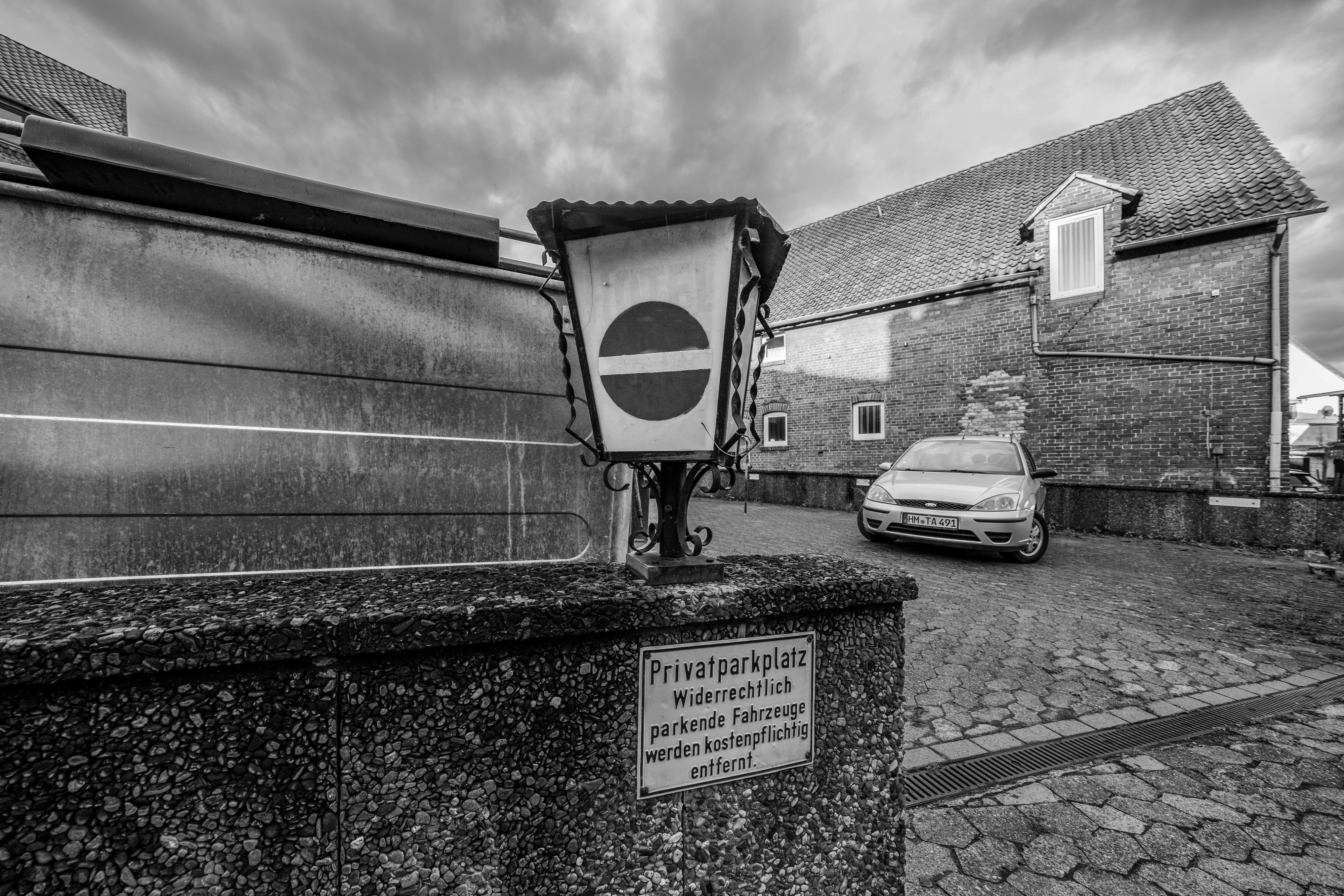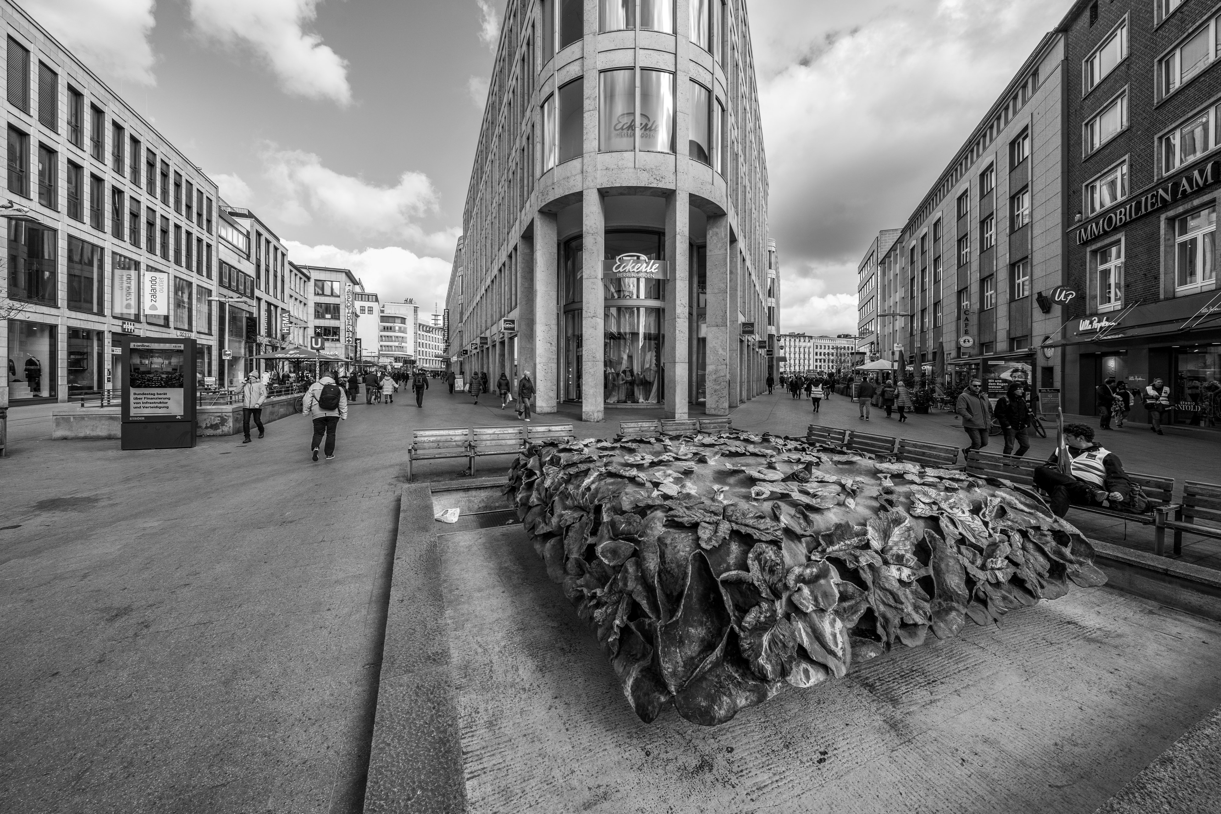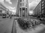 Der öffentliche Raum ist ein Querschnitt von individueller Gestaltung und zeitgenössischem Geschmack. Jede Epoche hinterlässt Spuren. Durch die stringente Reduktion auf schwarz-weiß und ein extremes Weitwinkleobjektiv werden Stadtkompositionen in ihrer Widersprüchichkeit sichtbar, die im normalen Alltag übersehen werden.