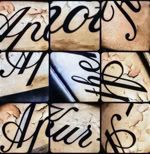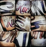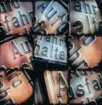 Buchstaben werden zu einem Wort zusammengefasst. Zeichen oder Logos können ganze Sätze transportieren. Die Akkumulation von Symbolen ist die Grundlage von Kommunikation. In dieser Serie werden Worte und Bilder fragmentarisch fotografiert und zu neuen Mustern zusammengesetzt. Das Tableau unersucht den Grenzbereich bis wohin Typografie Dekoration ist und ab wann sie in verständliche Kommunikation umschlägt.