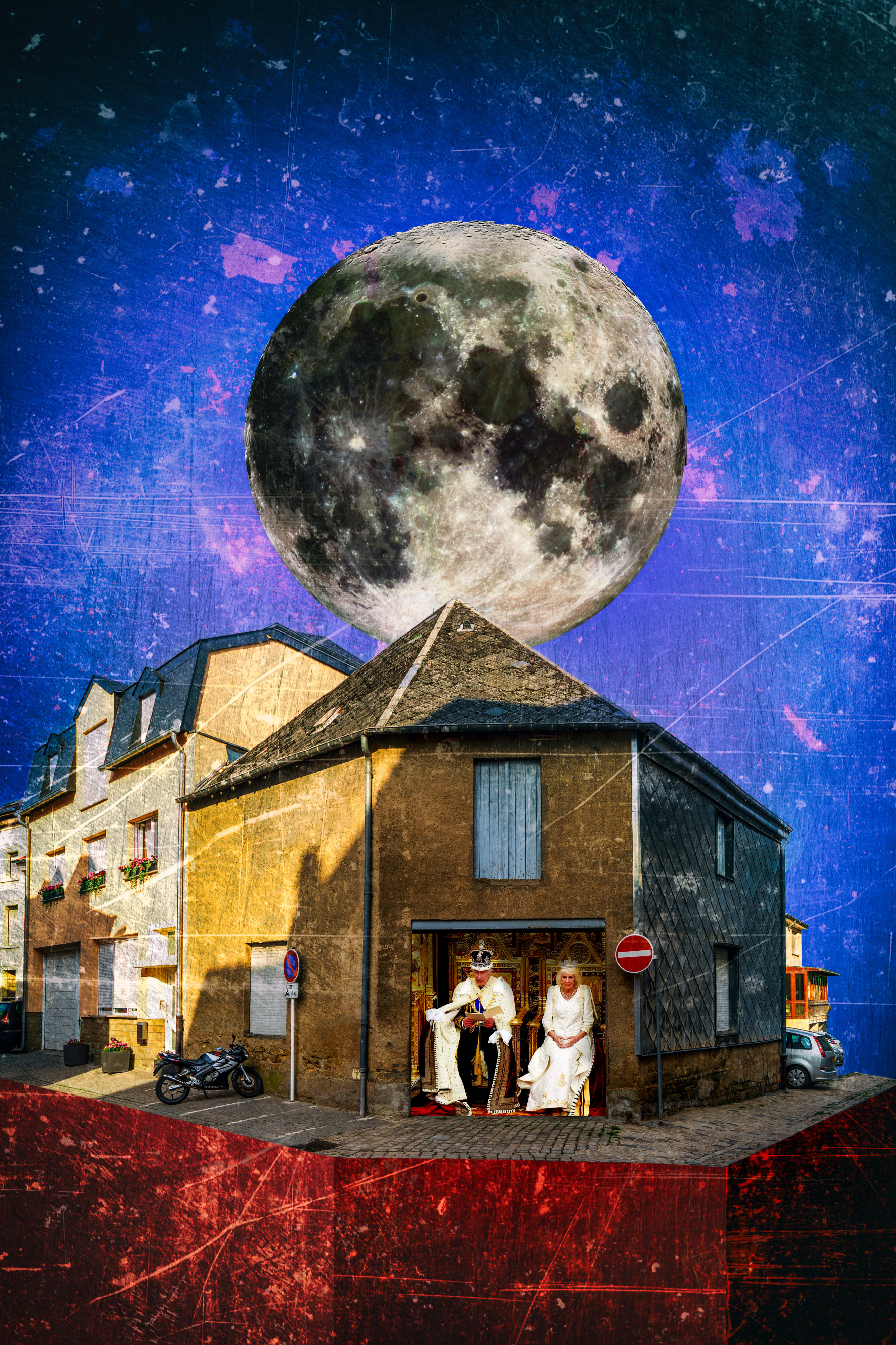 Die Portraits der deutschen Bundeskanzler und Bundeskanzlerin sind achtlos in einem fiktiven Raum aufgehängt. Es ist unklar, ob es sich um eine Putzkammer oder ein Wohnzimmer handelt. Die Idylle wird durch das äußere Inferno bedroht. Der leere, an die Wand gelehnte Bilderrahmen wartet darauf, den nächsten Kanzler oder Kanzlerin aufzunehmen.